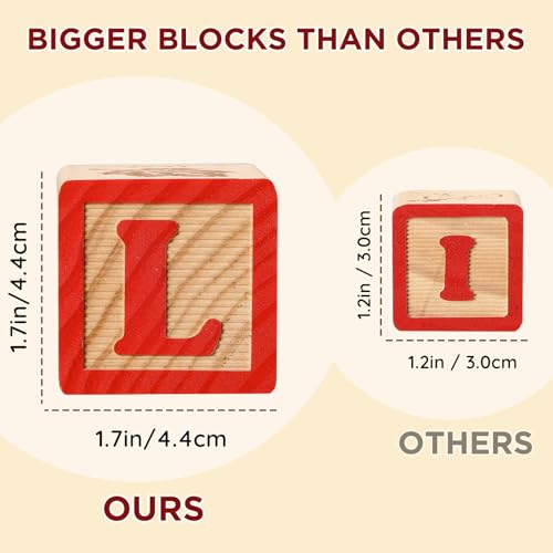 • SainSmart Jr. Wooden Alphabet Blocks 1.73 Inch, 30Pcs Building Blocks Including Letters, Numbers and Animals, Montessori Wooden Blocks for Preschool Toddlers