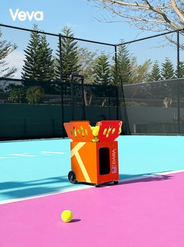 • Veva Portable Tennis Ball Machine, 62MPH Speed, 120+ Ball Capacity, 28 Customizable Spots & Presets, App Control, 4–8H Playtime, Dual Motor, Lightweight for Indoor & Outdoor Tennis (Vibrant Orange)