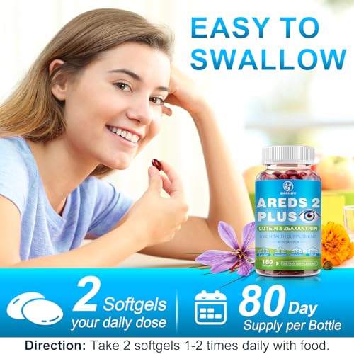 • AREDS 2 + Advanced Eye Vitamins Softgels-40mg Lutein and 4mg Zeaxanthin with Vitamins C, E, Saffron, Astaxanthin & DHA -Supports Macular Health,Dry Eye,Eye Strain, Night Vision-160 Softgels