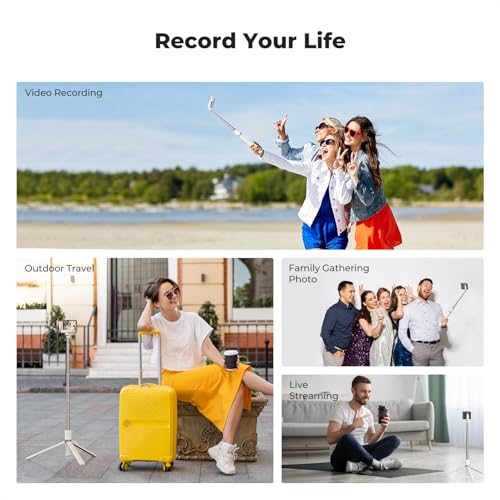 K&F CONCEPT 69" Selfie Stick, Pop Open & Quick Fold Phone Tripod, 360° Rotatable Selfie Stick with 9 Button Bluetooth Remote, Cell Phone Tripod for Travel, Live Streaming, Vloggers, White